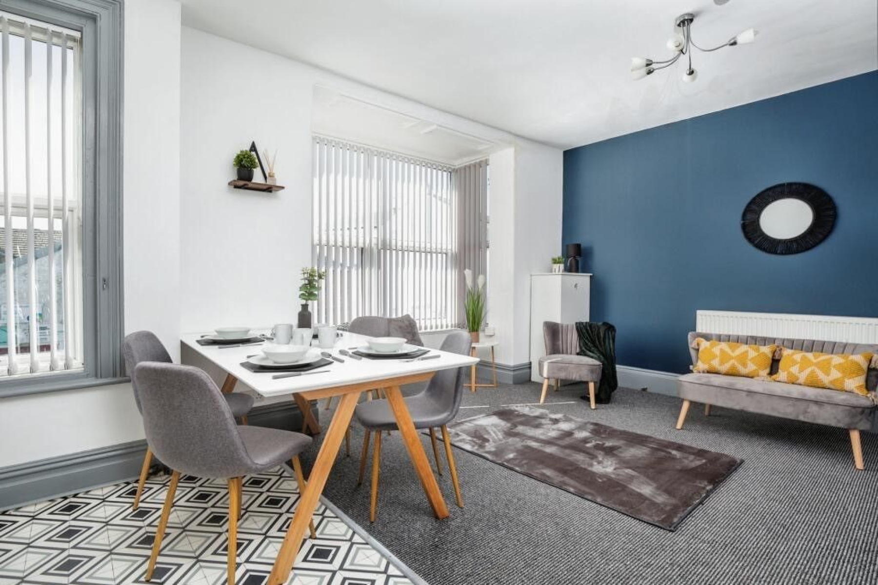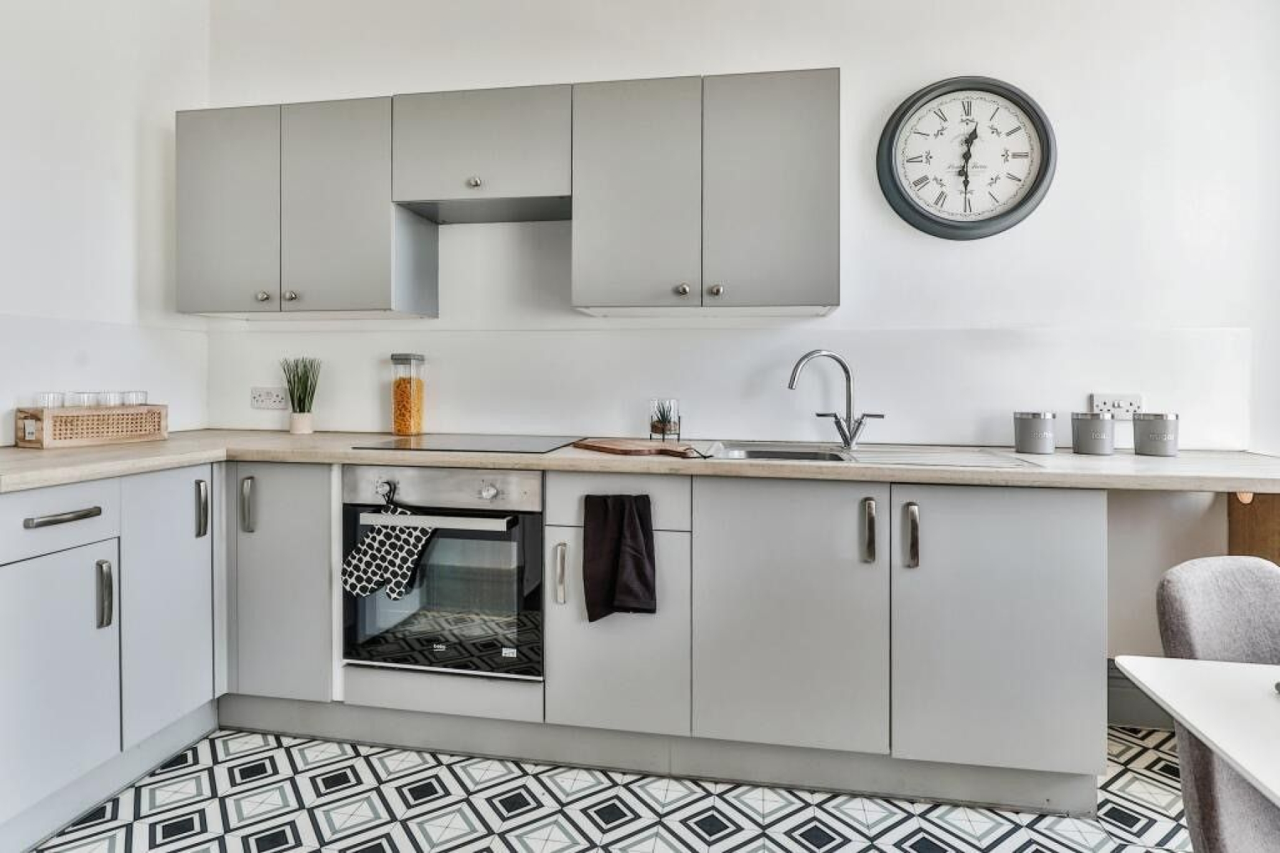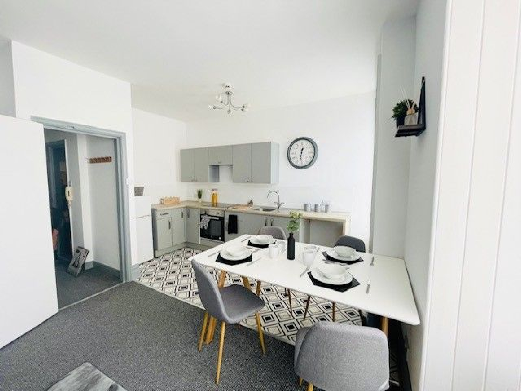 There's a gorgeous open plan living room / kitchen. The kitchen is brand new and ultra modern. Get your bake on!
