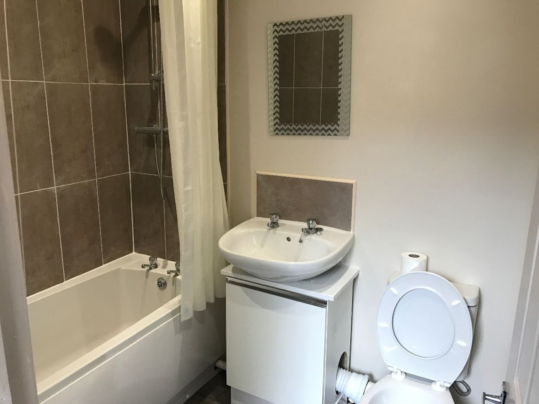 The bathroom is downstairs too, with shower over bath. Get the 'Dove' out and get clean clean clean!